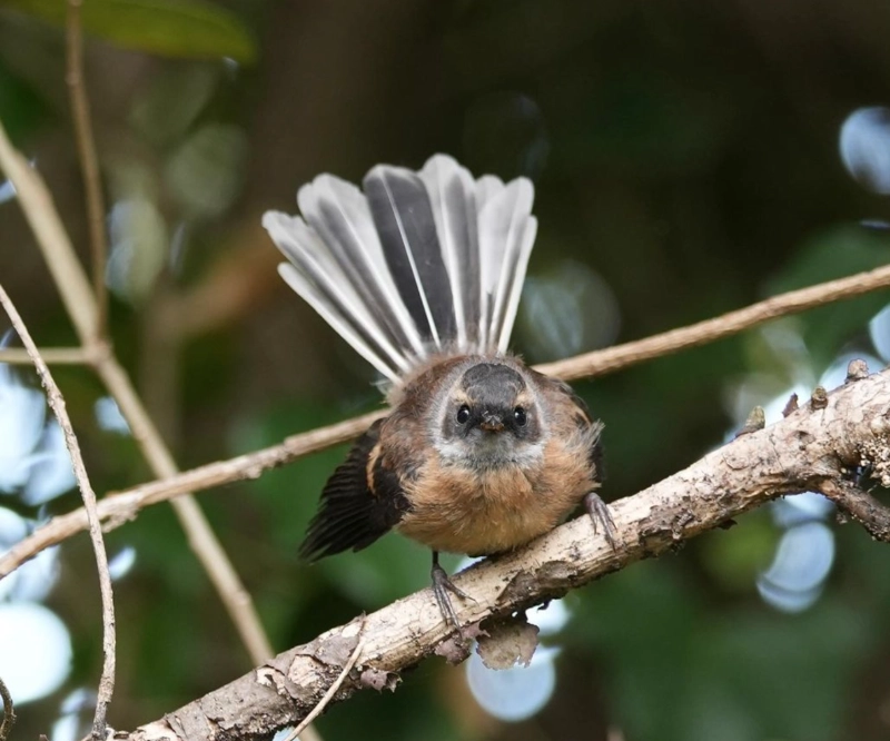 “They do this thing called mobbing, using their alarm calls. Every bird’s alarm call is different. Sometimes tiny little birds like silvereyes will be doing it, then the grey warblers join in,and if the fantails arrive you can be sure there is a ruru somewhere close. It’s a very subtle noise that you have to listen for.”