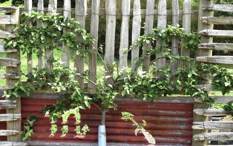 The M9 dwarfing rootstock keeps trees at a height of 2 to3m. M27 is even smaller. Generally, the more dwarfing the rootstock, the younger the tree will be when it starts to produce fruit and the larger its fruit will be. On the downside, some kind of support structure is commonly needed as these trees have shallower root systems, which also means more watering is needed in dry periods.