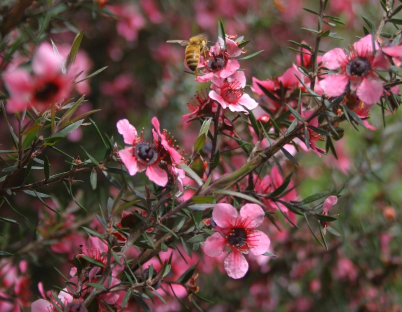 Manuka (Leptospermum)and Kanuka (Kunzea) are top choices for providing a quick canopy, their rapid growth providing shelter for slower-growing species, while their flowers are highly prized by bees. For gardeners wanting manuka with showy flowers there is a wide choice of colourful Leptospermum cultivars both tall and small.