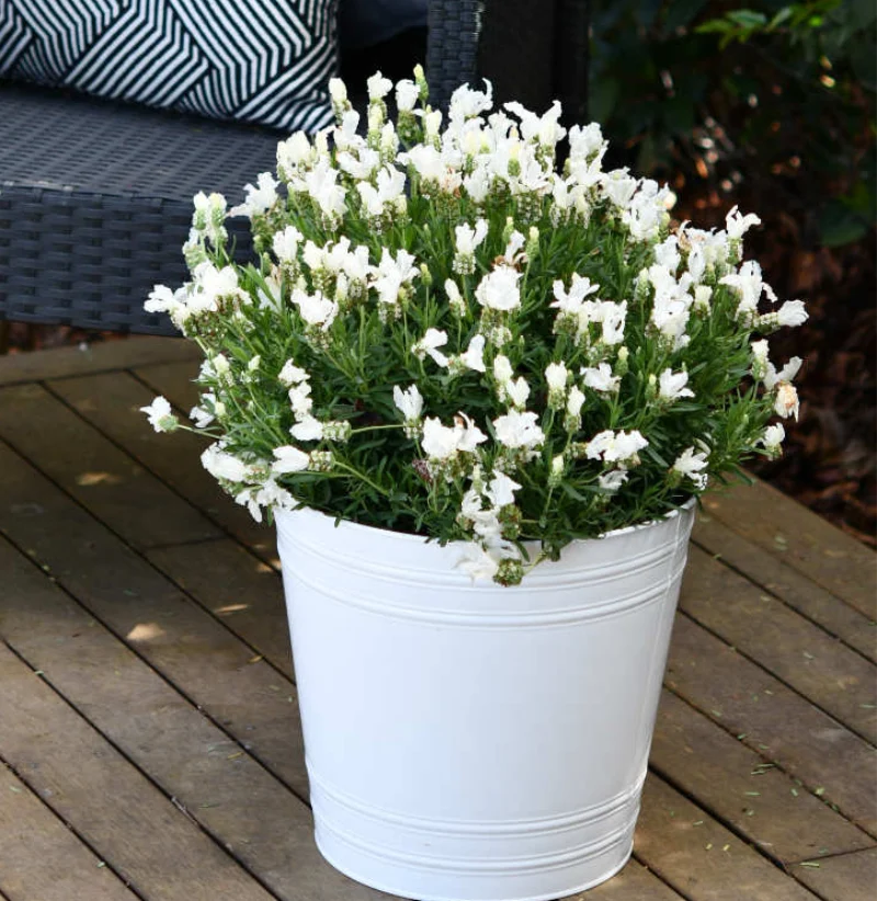 Then one fine day while casting their eyes over a sea of pink lavenders in their trial garden, the breeders noticed a white lavender shimmering in the sunshine, a white so pure the flowers looked like fresh snow. They decided to call her ‘The Snow Princess’.