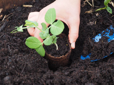 Peat pots and other bio-degradable pots, can be planted straight into the soil.