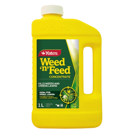 Lawns need some love after a long hot summer. It ’s time to banish broadleaf weeds while bringing hungry lawns back to life. Yates Weed ’n ’ Feed does both jobs in one easy sweep - with nitrogen and iron for strong green shoots, phosphorus for robust roots and potassium for disease resistance. Weed ’n’ Feed is available in ready-to-use ‘Hose-on' form or concentrate - ideal for small lawns or where a hose can ’t reach.