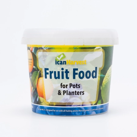 For all fruiting plants grown in pots and containers, ican Fruit Food for Pots & Planters works fast for a quick ‘green up’ and keeps feeding for 3-4 months. It contains potassium (K) to improve the flowering and fruiting and a slow release nitrogen source, broken down by soil microbes into plant available nitrogen. Not just for pots, it can also be used on the garden.