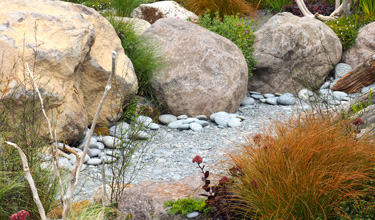 Groundcovers - Coprosma, Muehlenbeckia, Grevillea, Osteospermum (Cape daisy), Ophiopogon (Mondo grass), Sedum, Hemerocallis (daylily).